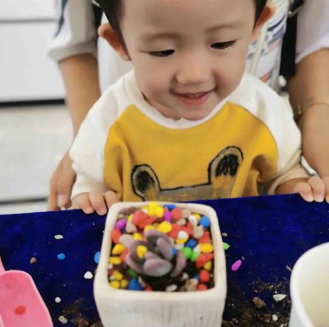 多肉DIY需要巧妙的構(gòu)思,小朋友們紛紛發(fā)揮自己的想象力:有的小朋友獨(dú)自創(chuàng)造自己的彩色世界,認(rèn)真地模樣惹人愛;有的小朋友和爸爸媽媽一起上陣,共同參與其樂融融。一培土一植物,皆能展現(xiàn)其獨(dú)特魅力。