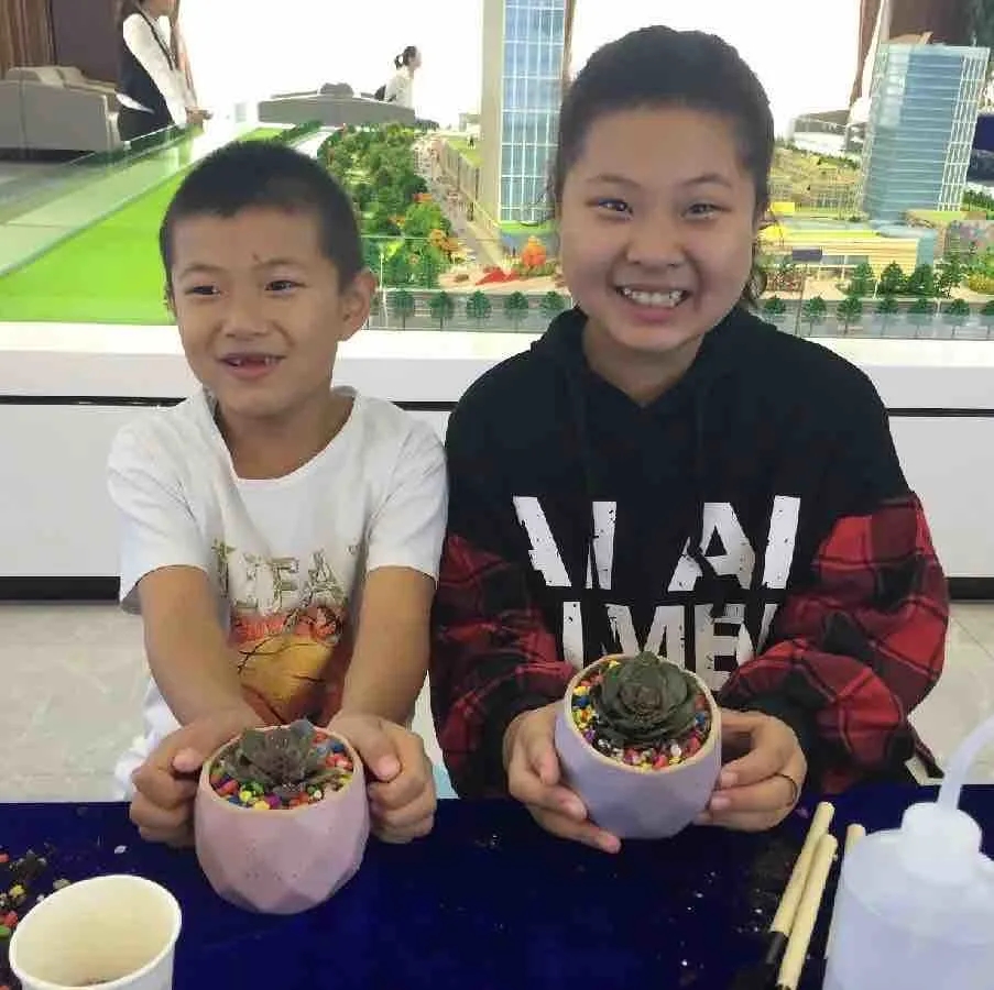 上午九點(diǎn)活動(dòng)正式開始,大小朋友們陸陸續(xù)續(xù)來到展示中心,工作人員將準(zhǔn)備好的多肉植物、小花盆、裝飾道具發(fā)放給大家,并為大家講解了多肉移栽種植的方法,在場的大小朋友們都躍躍欲試。