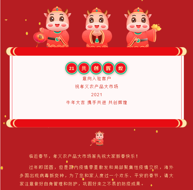 就地過年保安康,眾誠抗疫力量強丨孝義農產(chǎn)品大市場祝外地過年的人們牛年吉祥!