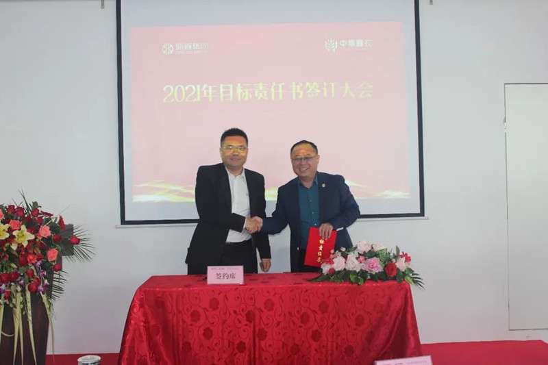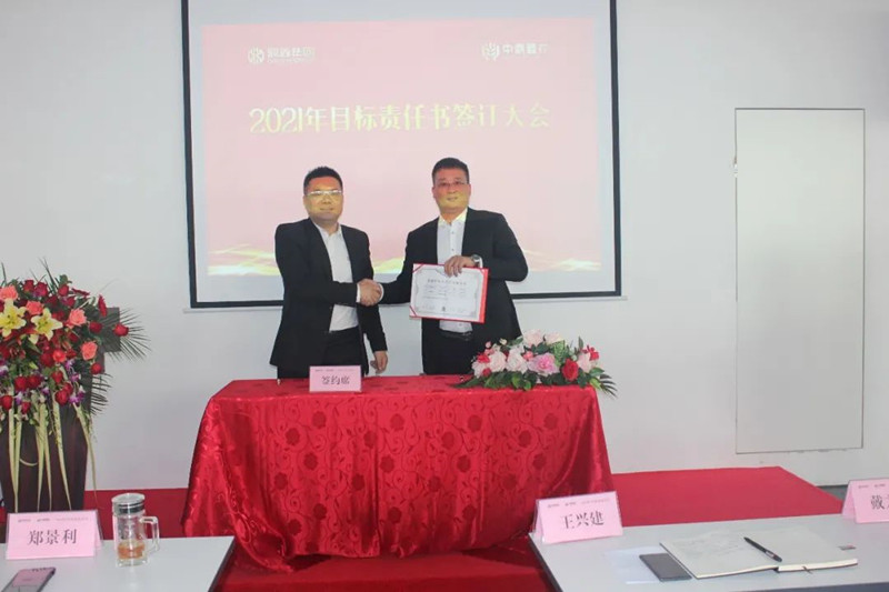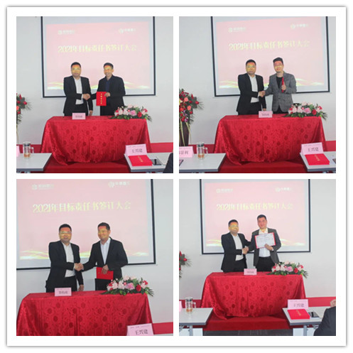 最后,在全體員工的見證下,董事長與山西孝義項目、新橋項目、青島萊西項目、蚌埠項目等負責(zé)人簽訂2021年度目標責(zé)任書,并拍照留念。