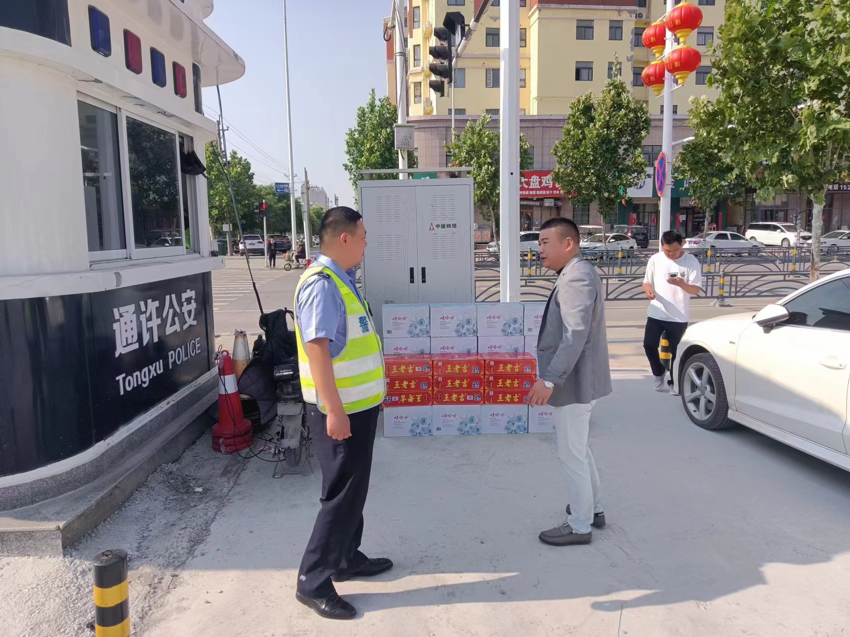 為表達對辛苦執(zhí)勤的一線交警的敬意和慰問,5月8日上午,鼎鑫·幸福滙項目總經(jīng)理查顯楊攜項目施工單位項目經(jīng)理何小慶在解放路與麗星路交警執(zhí)勤崗開展了警企共建慰問送清涼活動,為他們送上了清涼的飲用水、涼茶等物資。