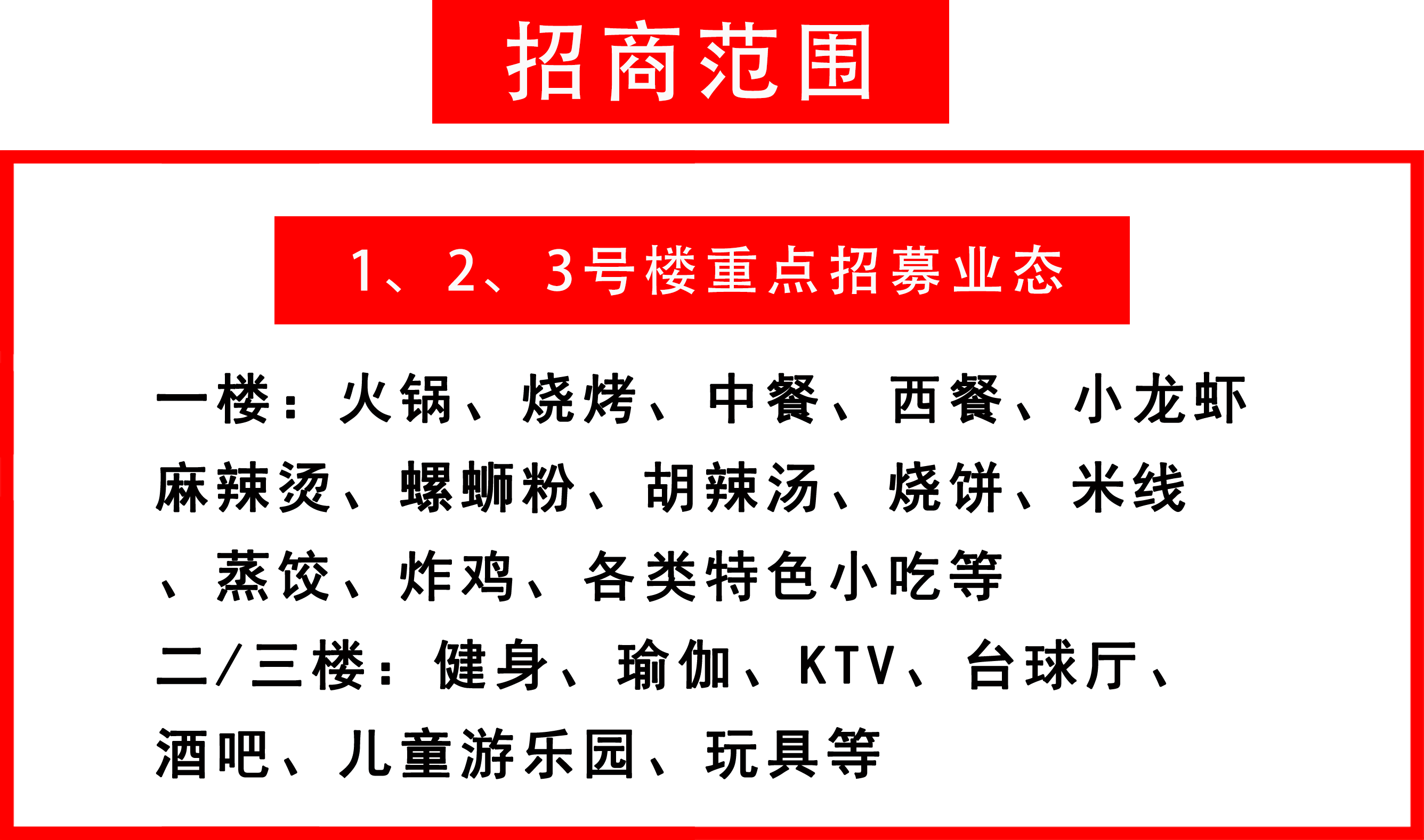 鼎鑫?幸福滙獨有“智慧農(nóng)貿(mào)市場+其他七個業(yè)態(tài)”的組合,巧妙融合形成8大業(yè)態(tài)聯(lián)動,構(gòu)建了一個剛需、高頻、全場景、強粘性的社區(qū)生活服務(wù)生態(tài)圈。現(xiàn)在,我們誠邀農(nóng)副生鮮、特色餐飲、娛樂潮玩、教育教培、日用百貨、酒店民宿、家居家電、金融、生活服務(wù)類商家攜手入駐,共贏財富局!