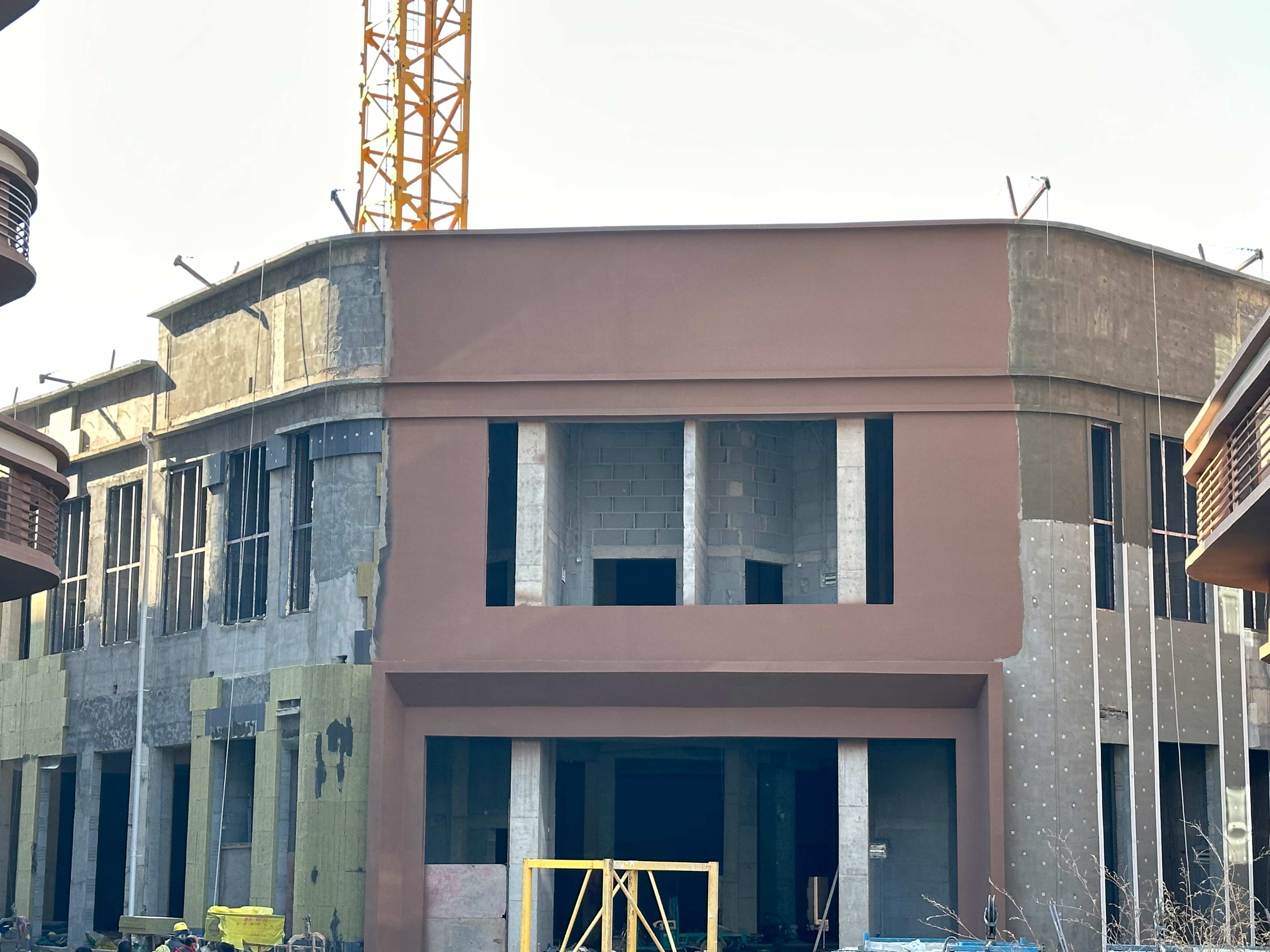 2#樓室內(nèi)粉刷完成,水電安裝完成,消防安裝完成,門窗安裝完成80%,外墻保溫涂料完成。