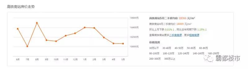 而對比高鐵南站板塊二手房均價已超過1.8萬。