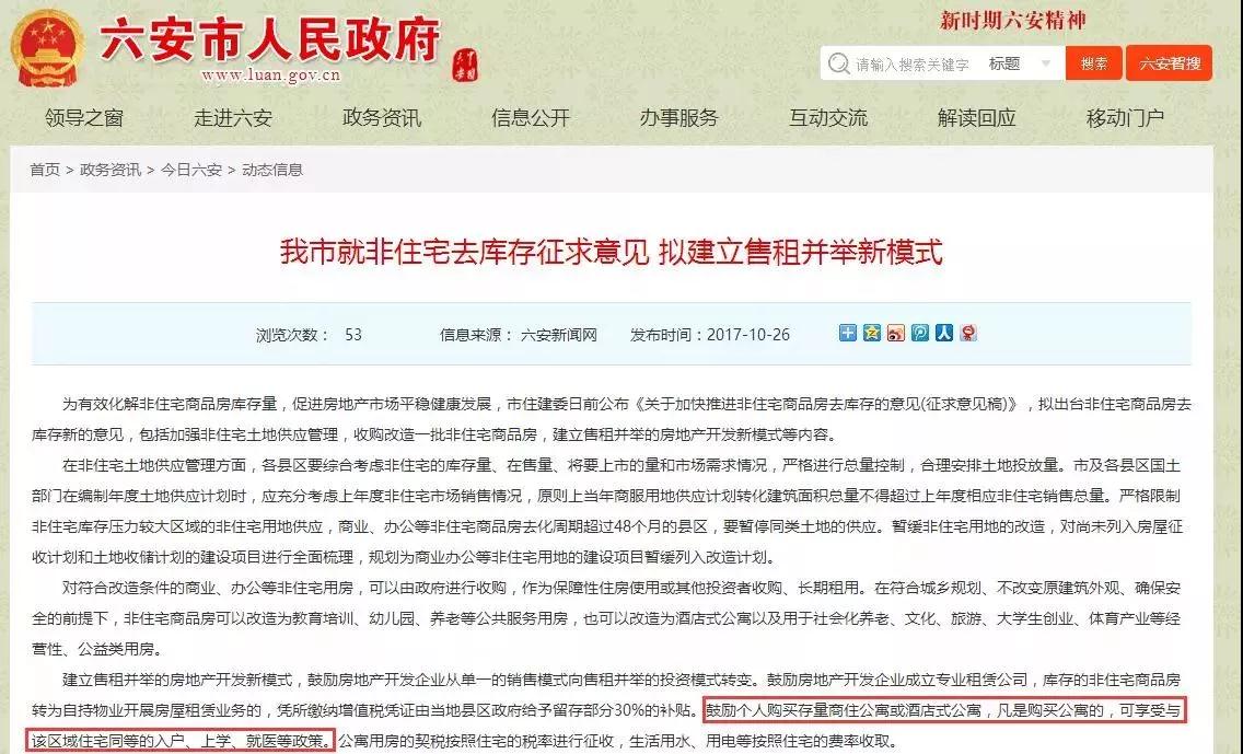 1安徽省發(fā)文:鼓勵(lì)買商住公寓