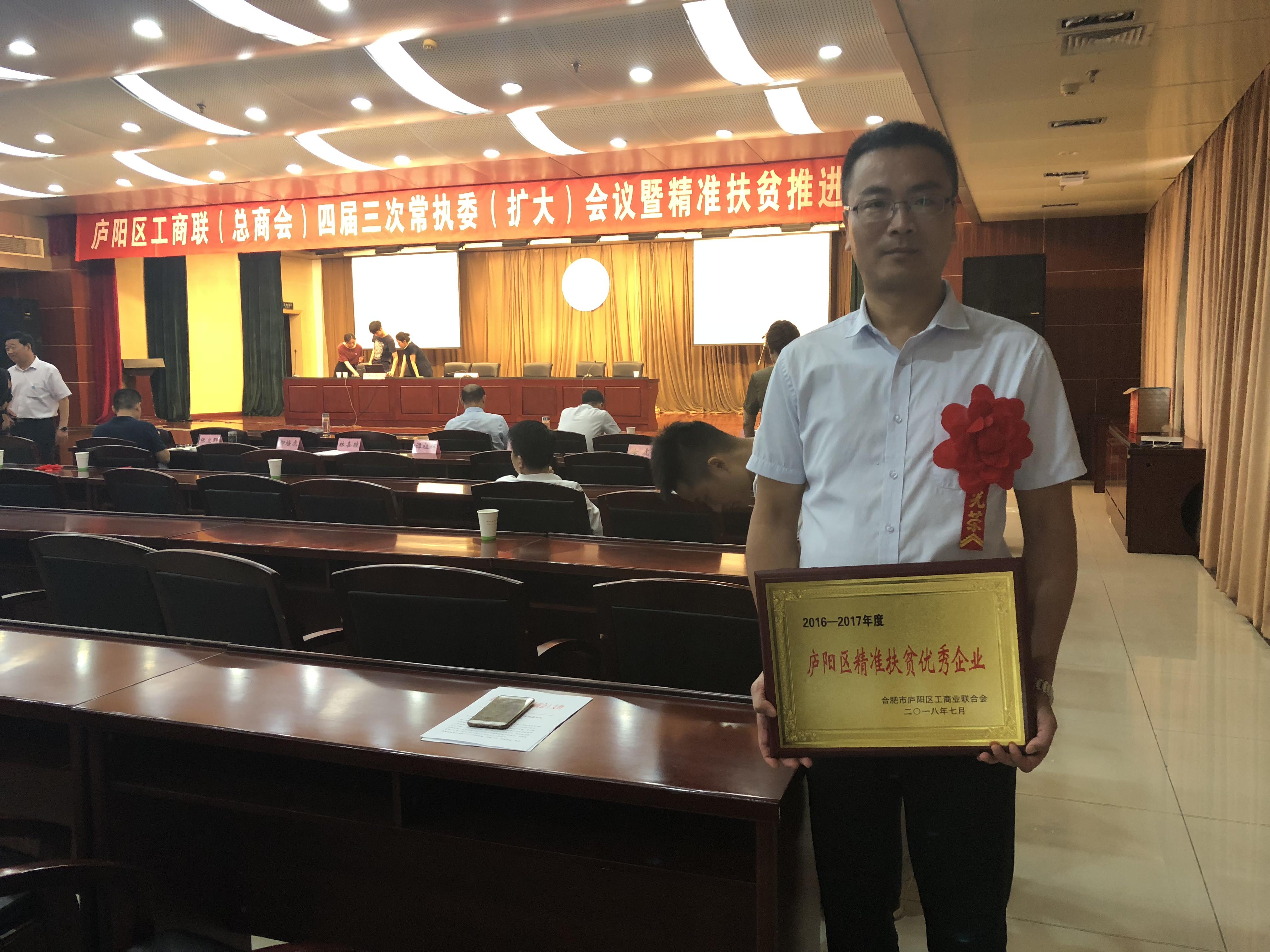 安徽鼎鑫投資集團(tuán)榮獲2016-2017年度廬陽(yáng)區(qū)精準(zhǔn)扶貧優(yōu)秀企業(yè)稱號(hào)